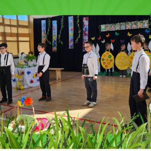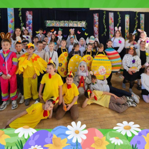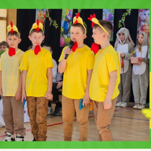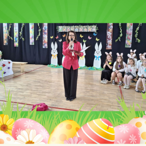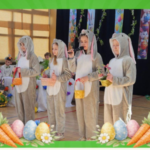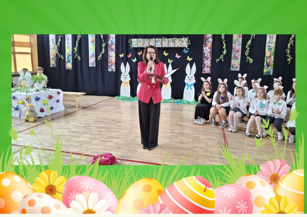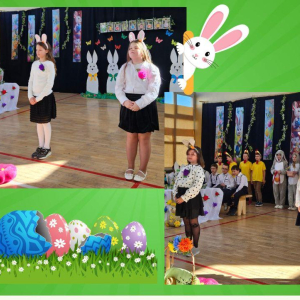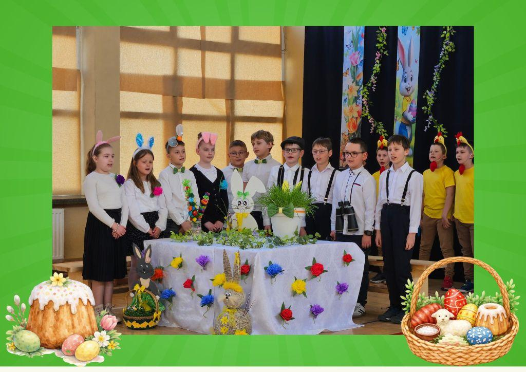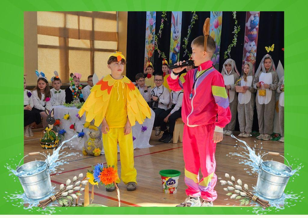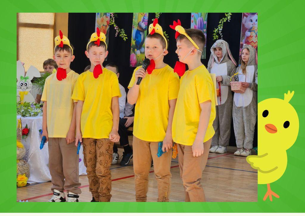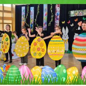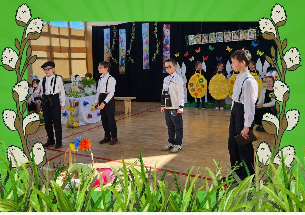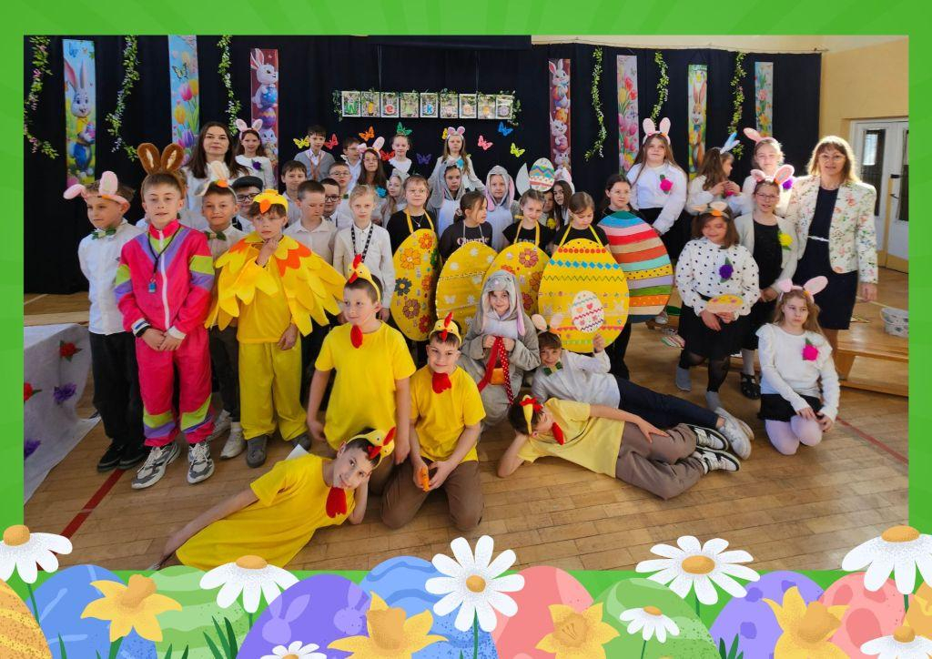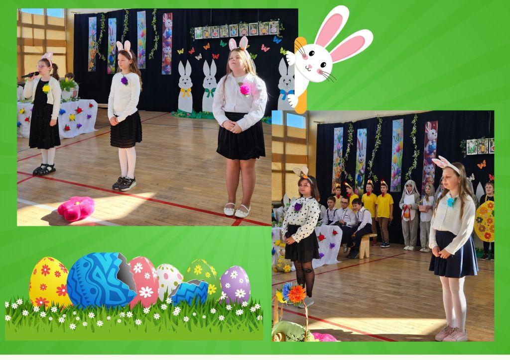Uczniowie zaprezentowali humorystyczne przedstawienie pt. „Wielkanocny survival”, czyli instrukcję obsługi świąt. Występ wzbudził wiele uśmiechów i wprowadził wszystkich w świąteczny nastrój. Na scenie pojawiły się barwne postacie – pisanki, zajączki i kurczaczki. Nie zabrakło tańców oraz wesołego śmigusa-dyngusa.