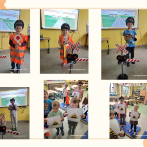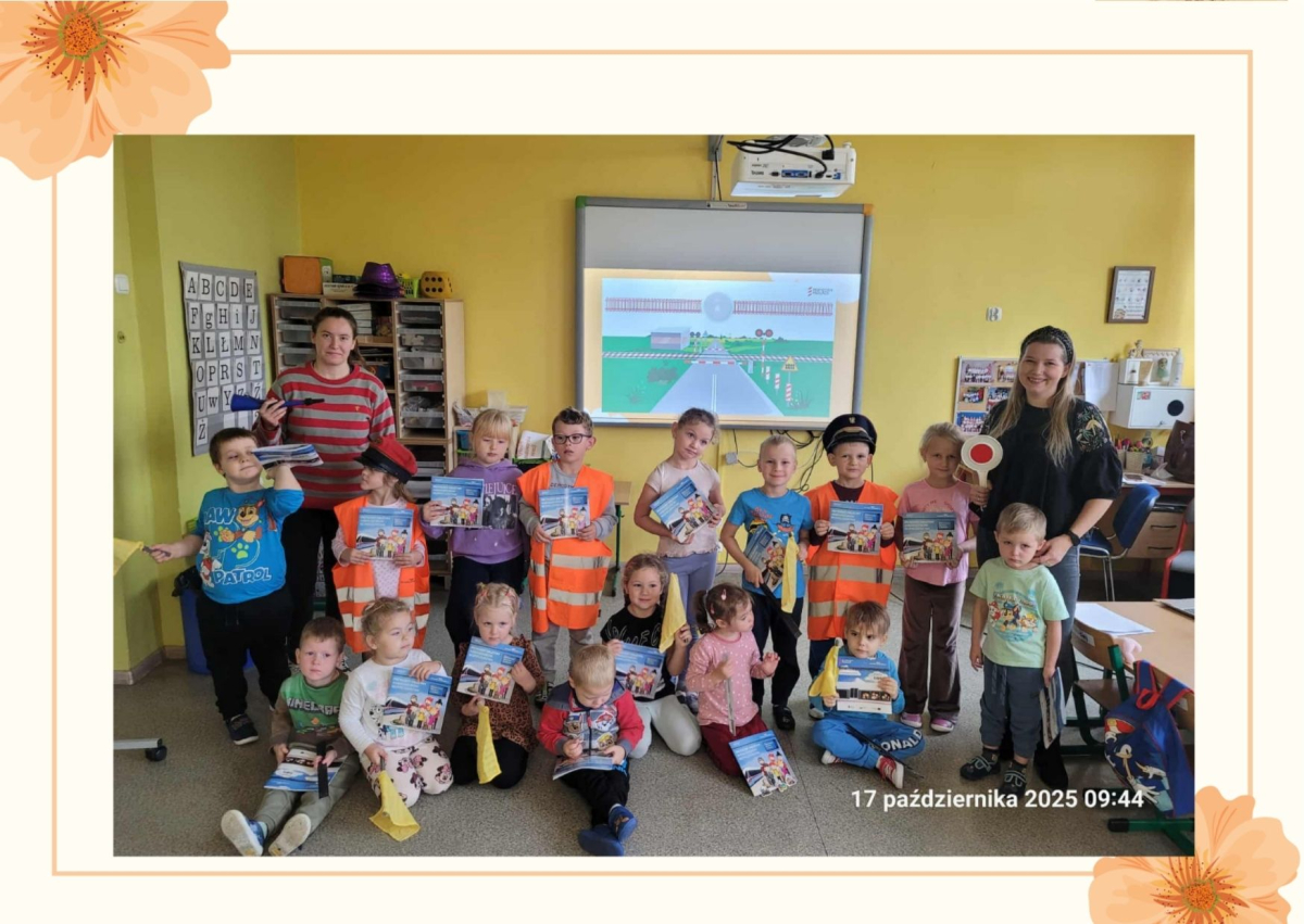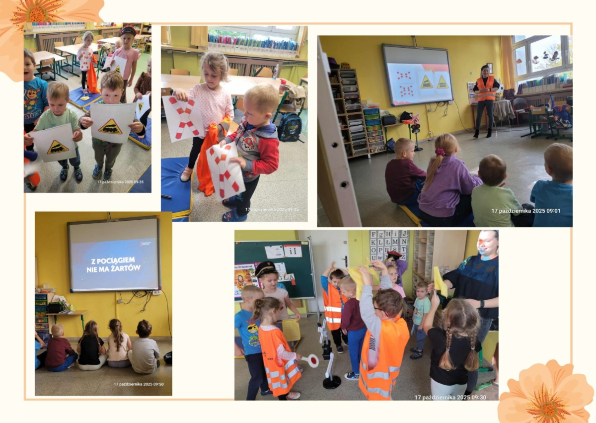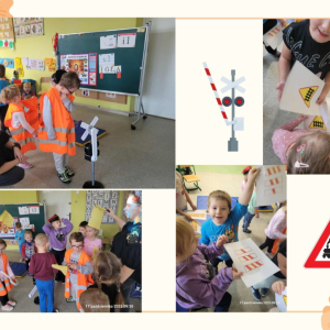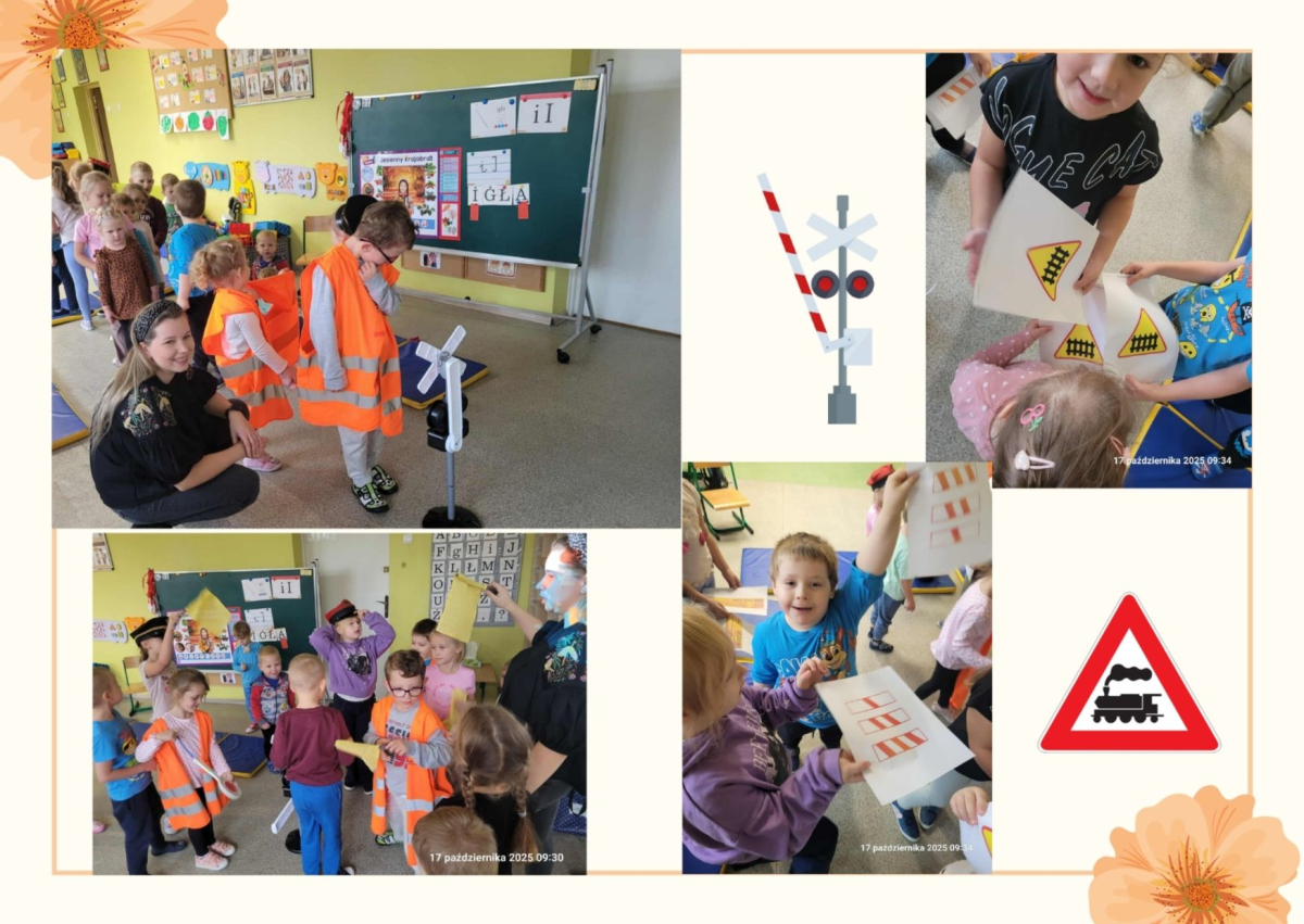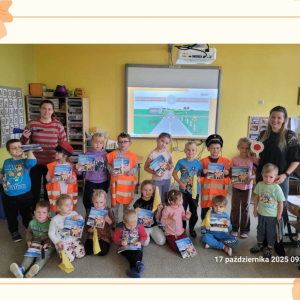 W piątek, 17 października grupę ,,Biedronek” odwiedziła Pani Angelika Jurgiel-mama Olka, która pracuje jako nastawniczy w Polskich Liniach Kolejowych w Pile. Pani Angelika opowiedziała dzieciom na czym polega jej praca, jak należy zachować się podczas przebywania na obszarach kolejowych oraz podczas podróżowania pociągiem. Dzieci poznały różne kategorie przejazdów kolejowych, jak zachować bezpieczeństwo na przejazdach oraz mogły zobaczyć rekwizyty niezbędne w pracy kolejarza. Ponadto dzieci obejrzały krótką bajeczkę pt. ,,Podróże z Ambasadorką Bezpieczeństwa”. Przedszkolaki w sposób praktyczny uczyły się przechodzenia przez tory kolejowe. Na koniec spotkania przedszkolaki zostały obdarowane upominkami.
