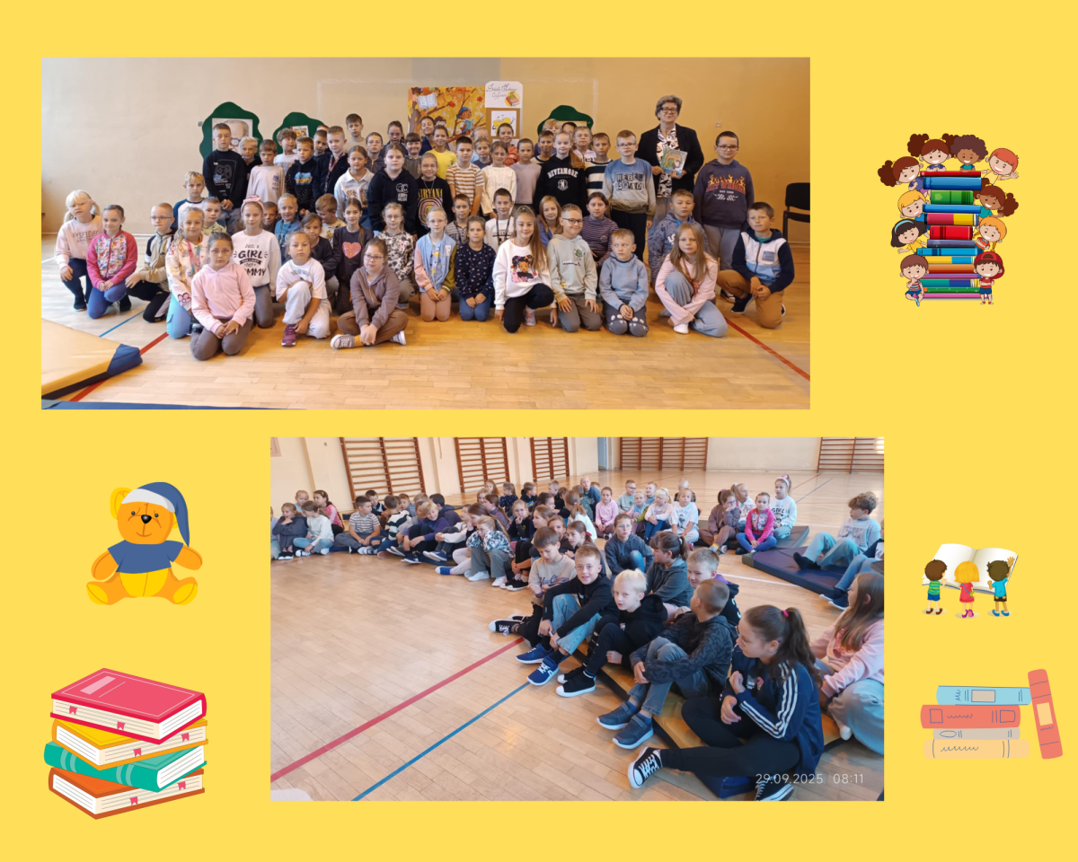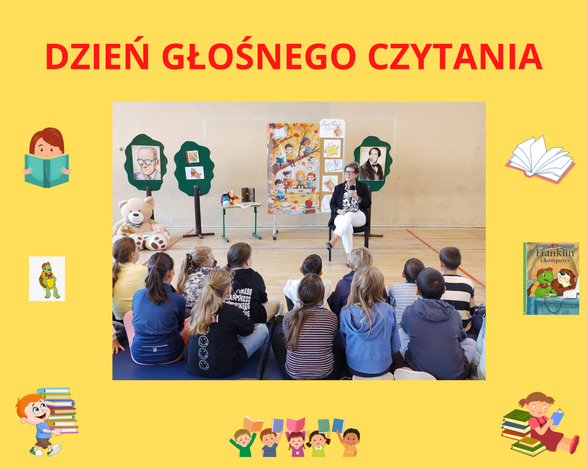 29 września 2025 roku obchodzony jest Ogólnopolski Dzień Głośnego Czytania, którego celem jest propagowanie czytelnictwa wśród dzieci i młodzieży. Nasza szkoła również włączyła się do tej akcji. W wydarzeniu brali udział uczniowie klas I – III. Pani Dyrektor Małgorzata Pawlaczyk przeczytała uczniom klas: 3a, 3b i 2b książeczkę pt. „Franklin i komputer”, która przedstawia jak główny bohater wpada w sidła gry komputerowej i zaniedbuje swoich przyjaciół.