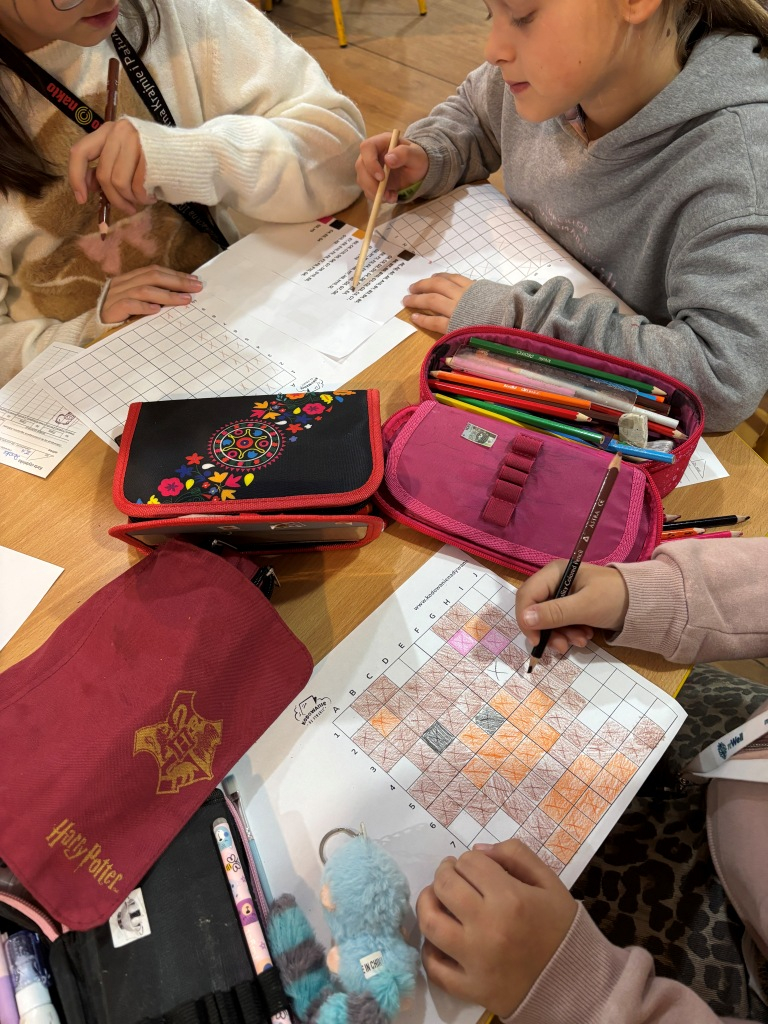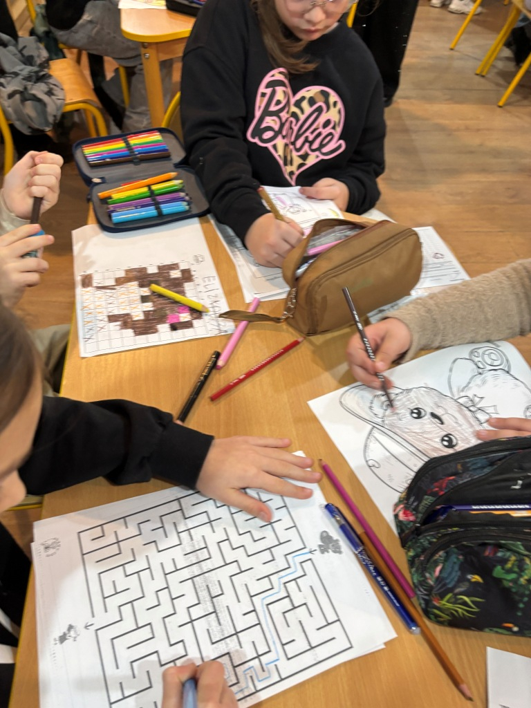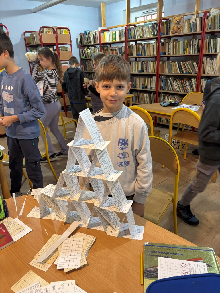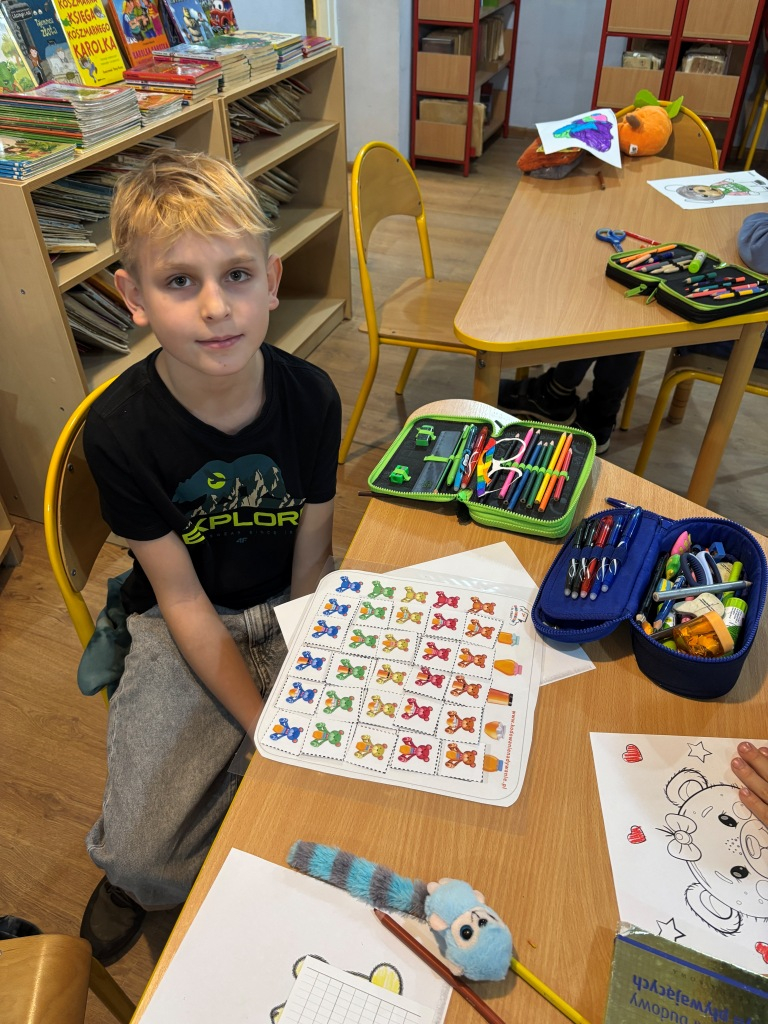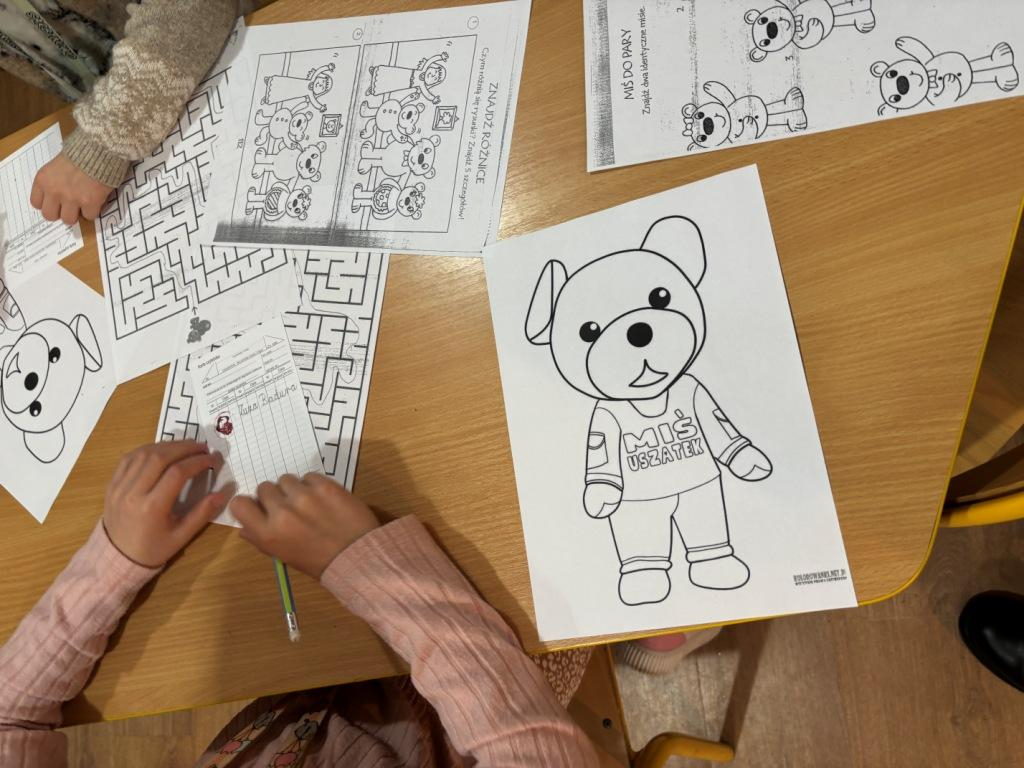 25 listopada obchodzimy Światowy Dzień Pluszowego Misia, dlatego też w dniach 25-28 listopada 2025 r. uczniowie naszej szkoły podczas przerw mogli w bibliotece szkolnej wziąć udział w zabawach o misiowej tematyce. Wśród nich znalazły się zadania gdzie trzeba było wykonać kodowanie, dopasować opis misia do zdjęcia, ułożyć puzzle, przeprowadzić misia przez labirynt, znaleźć różnicę, zbudować domek dla misia. Uczniowie otrzymali karty biblioteczne, na których zbierali punkty w postaci pieczątek z misiem.