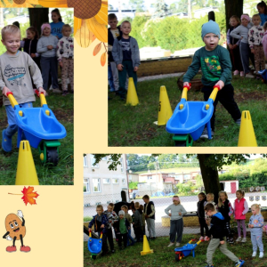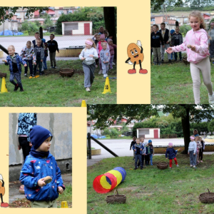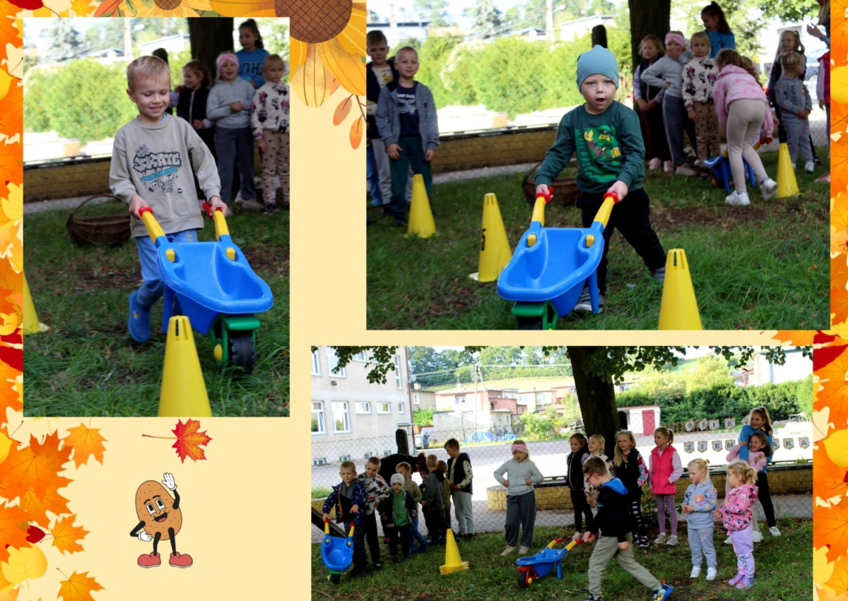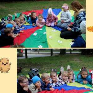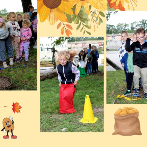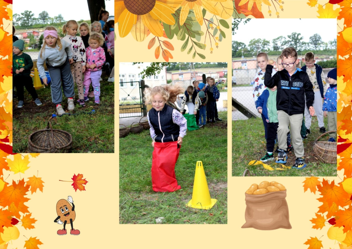 Dnia 23 września 2025r. w godzinach popołudniowych odbył się Dzień Pieczonego Ziemniaka, w którym dzieci uczestniczyły razem z rodzicami. Na początku imprezy odbyły się różne konkurencje sportowe z ziemniakiem w roli głównej. Nie zabrakło rzucania ziemniakiem do celu, wożenia ziemniaka na taczce, a największą radość sprawiła dzieciom zabawa w chodzenie z ziemniakiem na łyżce. W trakcie wydarzenia dzieci zmierzyły się także z zagadkami o ziemniakach, co wywołało wiele śmiechu i radości. Po zakończeniu konkurencji przyszedł czas na wspólne pieczenie kiełbasek