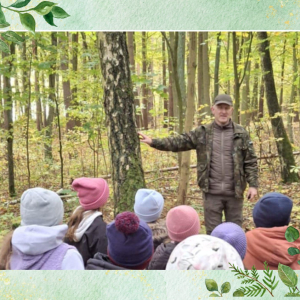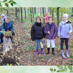 Podczas spaceru pan Tomasz pokazał nam różne gatunki drzew i opowiadał o warstwach lasu oraz roślinach, które je tworzą. Mieliśmy też okazję zobaczyć grobowce kurhanowe – tajemnicze ślady dawnych czasów ukryte wśród drzew.