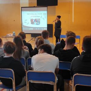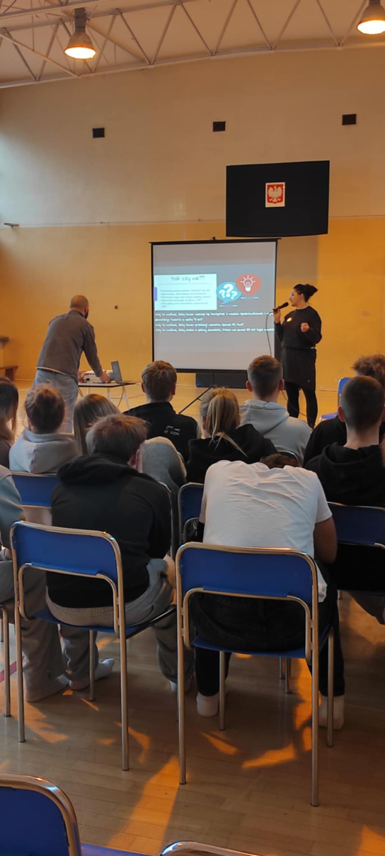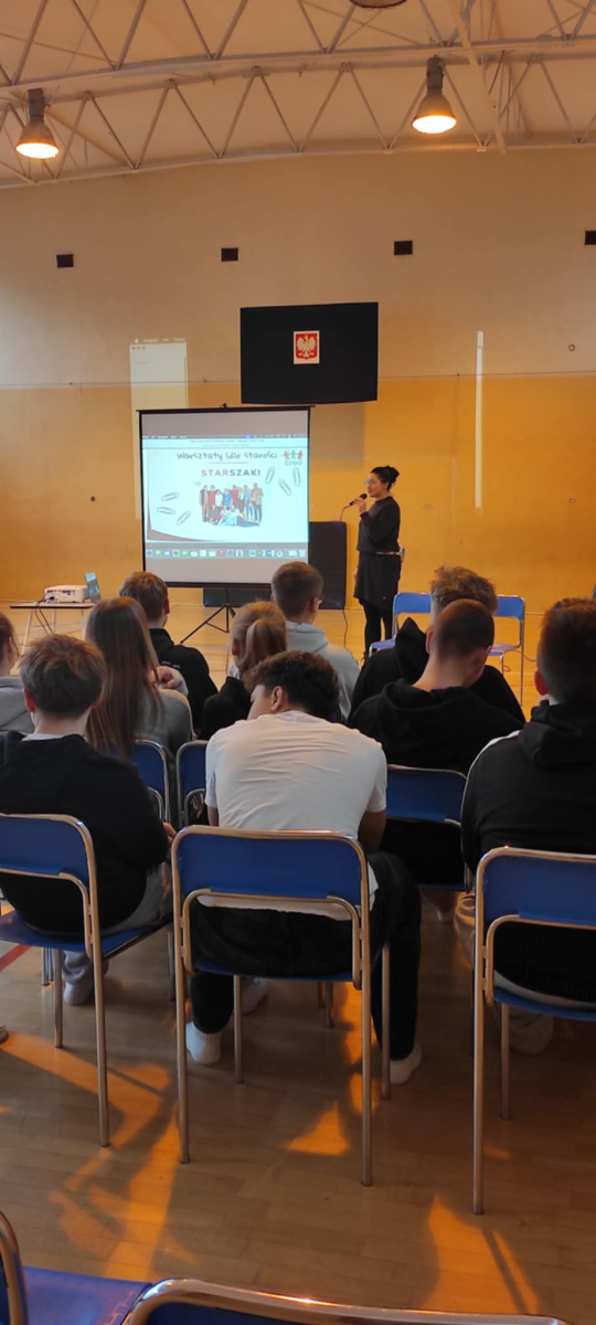 17 grudnia 2025 r. w naszej szkole odbyły się warsztaty dla uczniów klas ósmych poświęcone problemom wieku senioralnego. Organizatorem wydarzenia była Spółdzielnia Socjalna „Nowe Horyzonty” z Piły wraz z Miejsko-Gminnym Ośrodkiem Pomocy Społecznej z Wyrzyska.