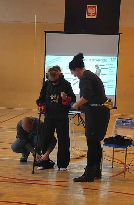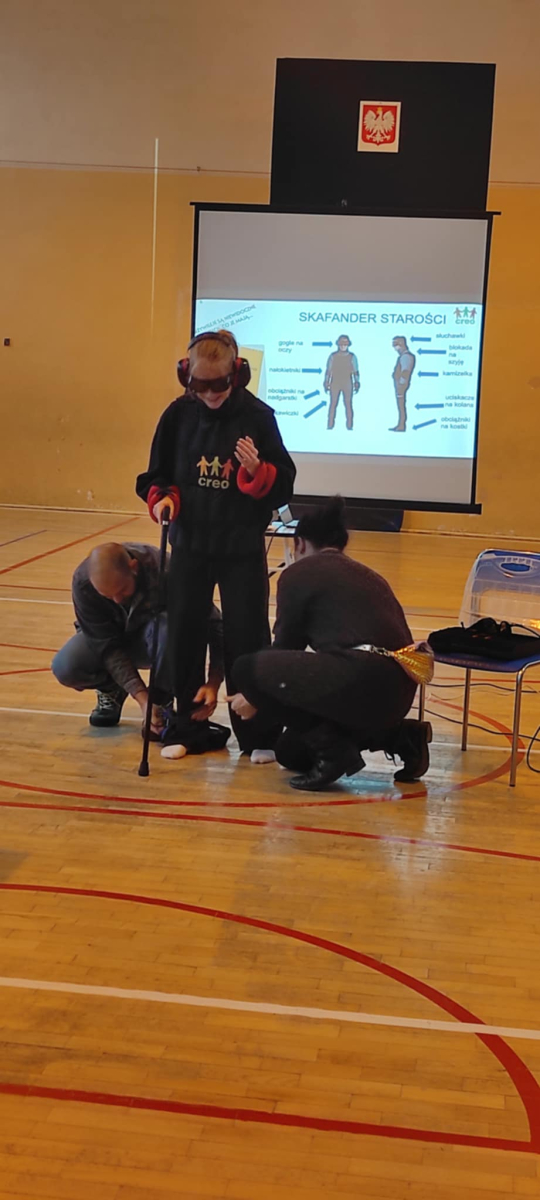 Podczas zajęć uczniowie i uczennice dowiedzieli się, jak zmienia się człowiek wraz z wiekiem, a także rozmawiali o wyzwaniach związanych ze starzejącym się społeczeństwem oraz o zjawisku dyskryminacji ze względu na wiek. Młodzież miała również niecodzienną możliwość poczuć się jak senior, korzystając z symulatora starości.