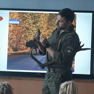 Dnia 4 listopada klasa I a spotkała się z panem Tomaszem Łukaszukiem - Starszym Strażnikiem Państwowej Straży Łowieckiej w Pile. Strażnik łowiecki to specjalista odpowiedzialny między innymi za monitorowanie i ochronę terenów łowieckich, egzekwowanie przepisów prawa łowieckiego oraz dbanie o zrównoważone zarządzanie populacjami zwierząt łownych.