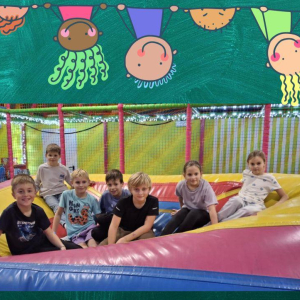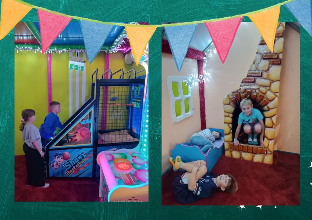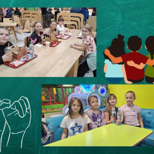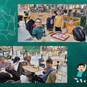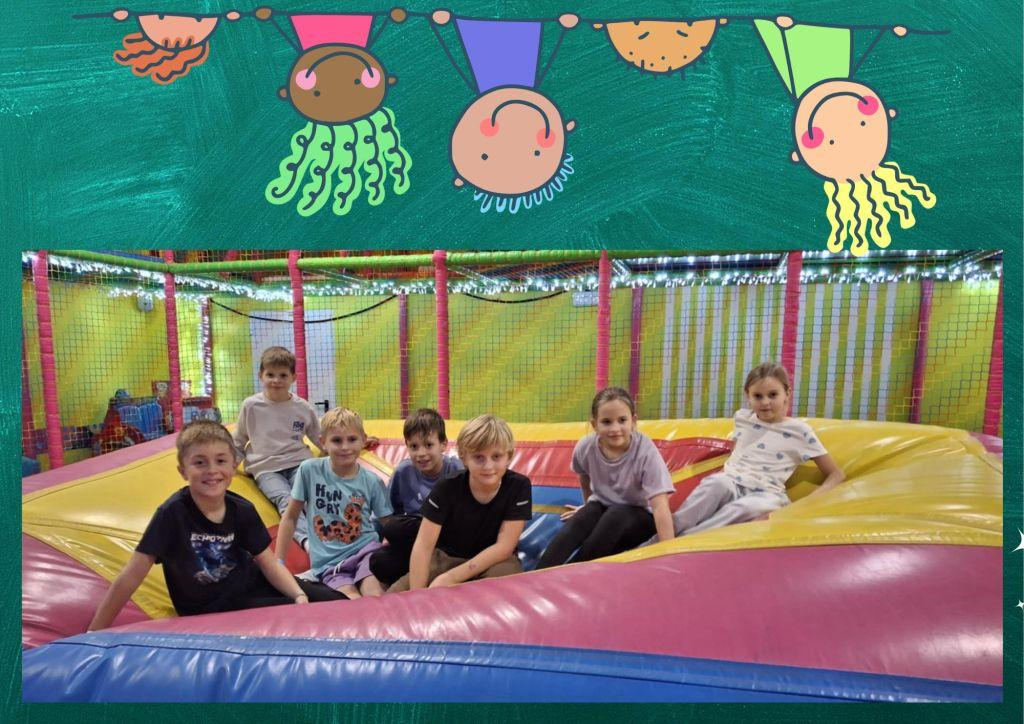 Po seansie udaliśmy się do sali zabaw Euro-Lider, gdzie na uczniów czekały liczne atrakcje: ścianki wspinaczkowe, zjeżdżalnie, baseny z kulkami oraz gry zręcznościowe. Był to czas pełen aktywności, śmiechu i integracji. Następnie zjedliśmy posiłek w KFC i mieliśmy chwilę na zakup drobnych pamiątek.