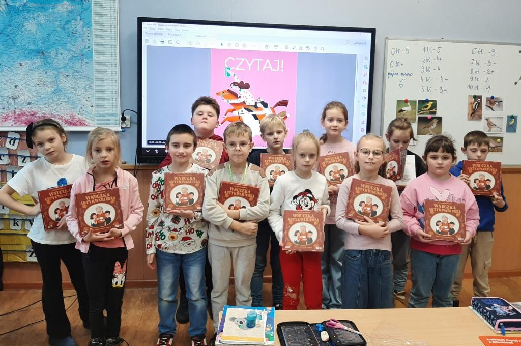 Kampania ,,Mała książka – wielki człowiek” to ogólnopolski projekt realizowany przez Instytut Książki ze środków Ministerstwa Kultury i Dziedzictwa Narodowego. W ramach projektu uczniowie klas pierwszych z całej Polski otrzymali Wyprawki Czytelnicze. Tegoroczna edycja Wyprawki Czytelniczej zawiera publikacje: ,,Wnuczka antykwariusza” – książkę autorstwa cenionej pisarki Justyny Bednarek, opatrzoną ilustracjami wybitnej artystki Emilii Dziubak oraz ,,Kochasz? Czytaj razem z dzieckiem!” – broszurę, w której rodzice i opiekunowie znajdą informacje o korzyściach wynikających ze wspólnej, rodzinnej lektury. Celem kampanii są działania na rzecz najmłodszych uczniów, którzy dopiero zaczynają naukę w szkole podstawowej, a tym samym rozpoczynają niezwykłą przygodę z czytaniem.
