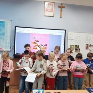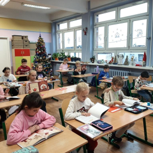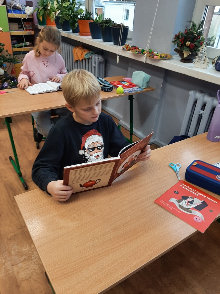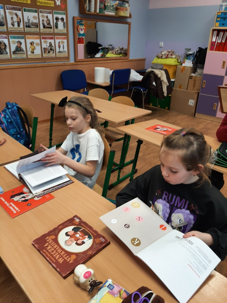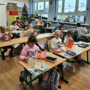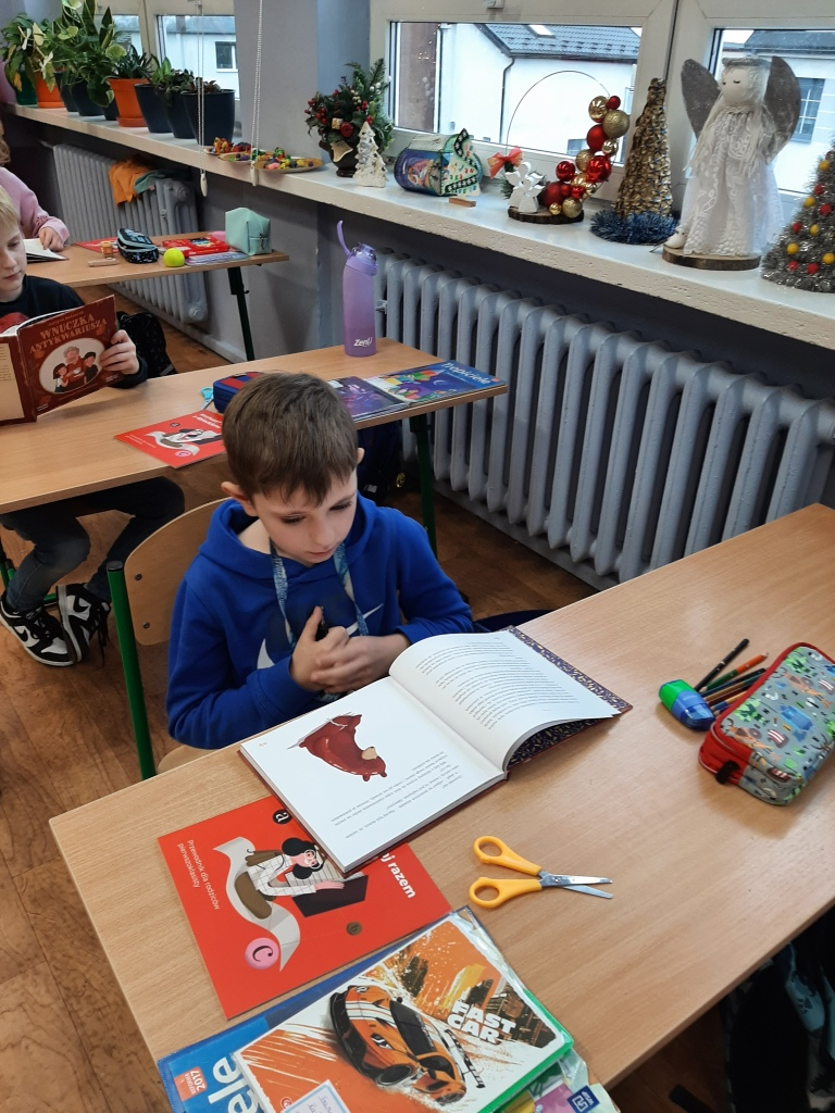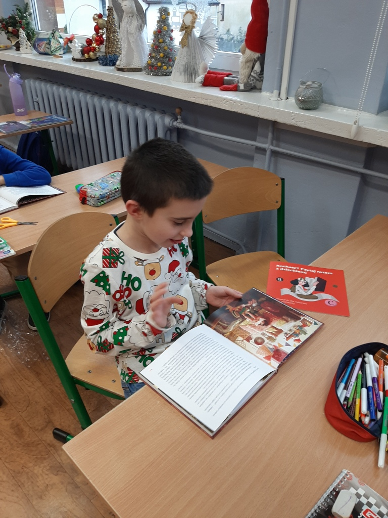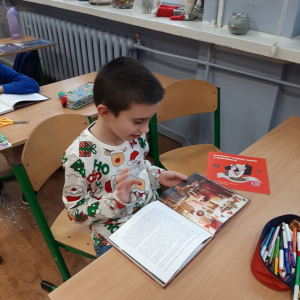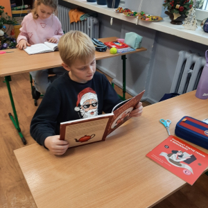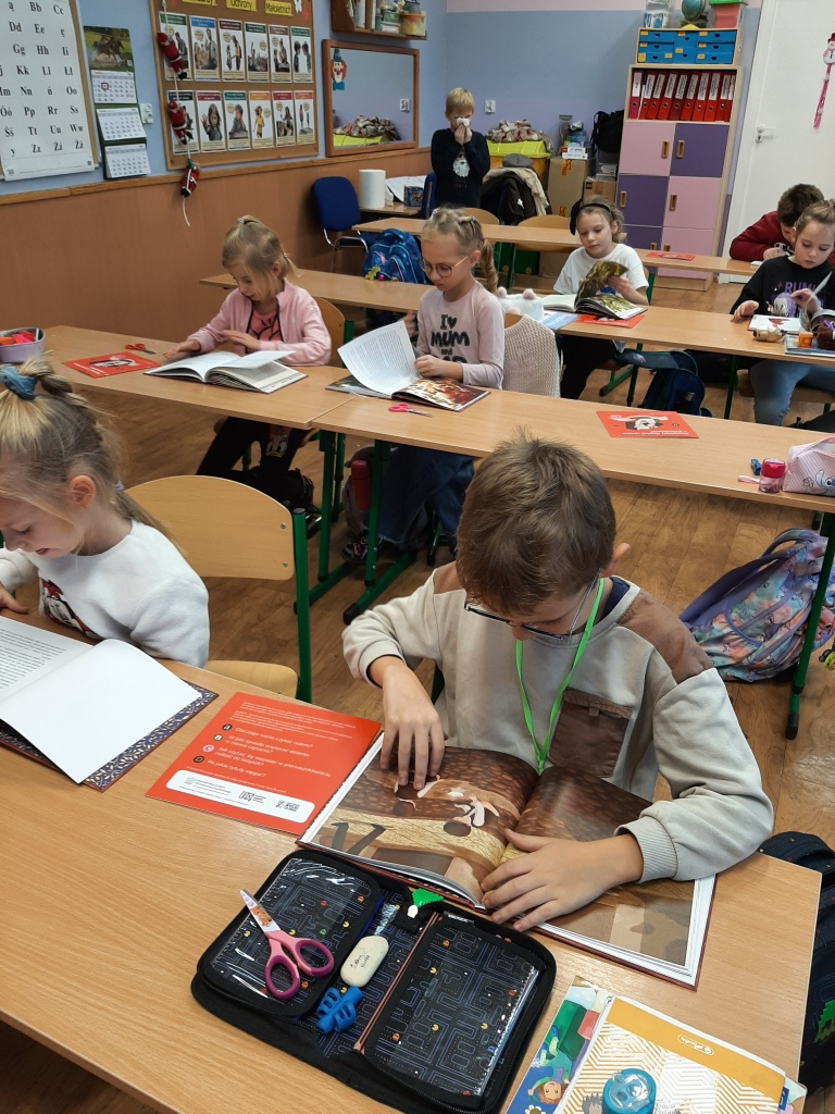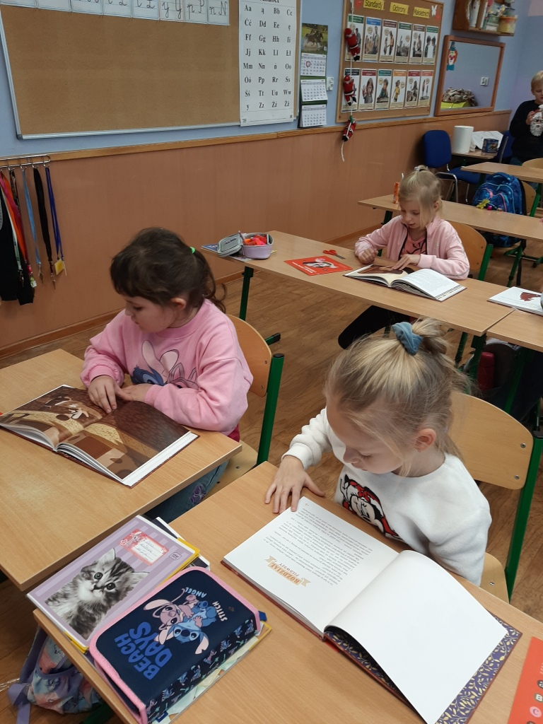 Nasi uczniowie z radością przyjęli ten niespodziewany prezent. Na zajęciach poznali główne postacie książki i dowiedzieli się o roli czytania w życiu człowieka. Obiecali, że poproszą rodziców o wieczorne czytanie przed snem i poznanie dalszych przygód bohaterów.
