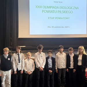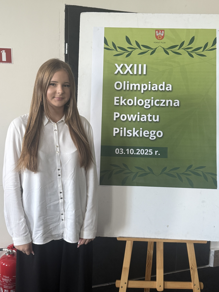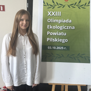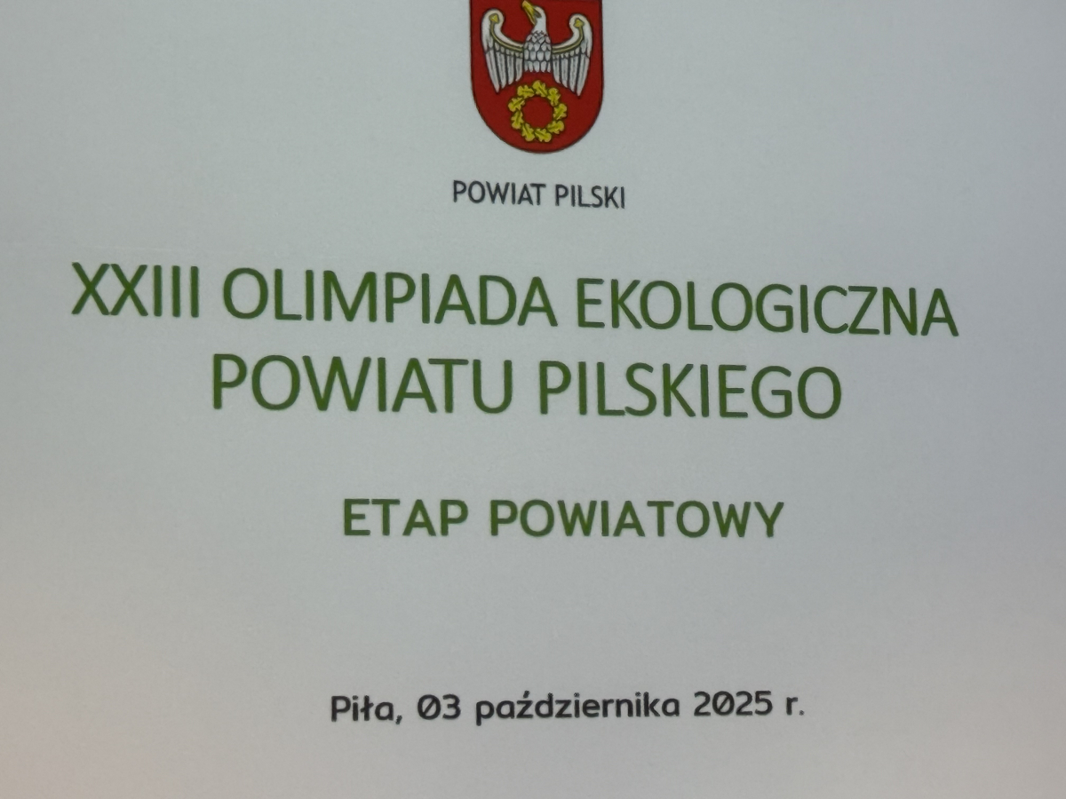 3 października 2025 r. w Centrum Powiatowym ISKRA w Pile odbył się etap powiatowy XXIII Olimpiady Ekologicznej Powiatu Pilskiego. Naszą szkołę w tym konkursie reprezentowały 4 uczennice - laureatki eliminacji gminnych: Nadia Wika, Kornelia Bureta, Oliwia Kasperek i Blanka Lorek.